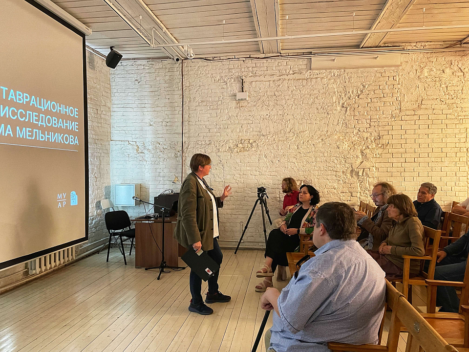 На совещании члены совета обсудили проект реставрации, разработанный бюро «Рождественка» в 2021-2022 гг., основные проблемы и варианты их решения. Реставрация такого уникального памятника, по праву считающегося иконой русского авангарда, — это сложный и очень важный этап жизни Музея Архитектуры и Музея Мельниковых.