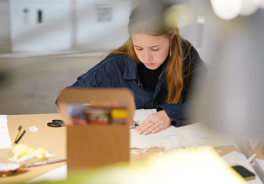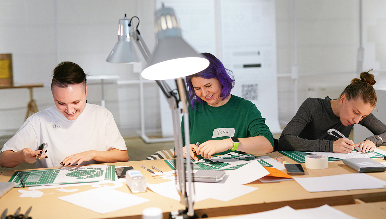 Куратор воркшопа — Елена Шарганова, художница, участница выставки «Времени нет. Лаборатория МУАР х цех».