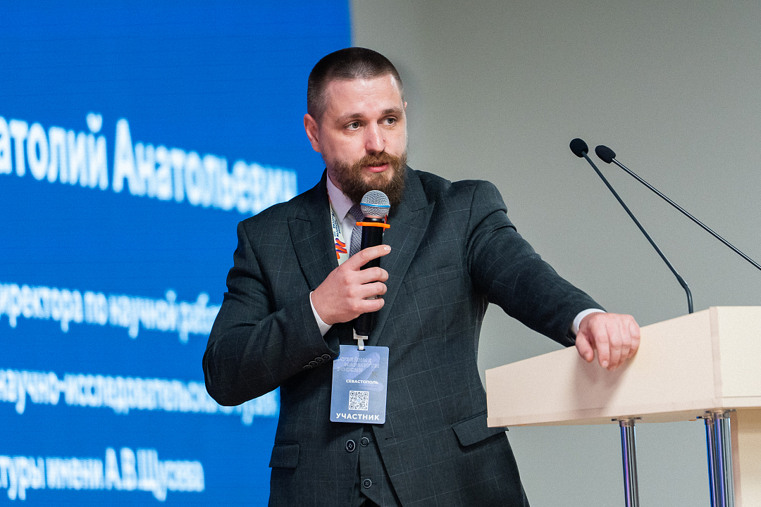 В рамках экспертной сессии «Как говорить о христианском искусстве сегодня? Опыт храма, музея, художника» Анатолий Оксенюк выступил с докладом «Показ древнерусской архитектуры в музее. Поиск своего Средневековья», где рассказал о последних выставочных проектах Музея, посвященных или связанных с древнерусским зодчеством: «Александр Ополовников. Реставратор русского деревянного зодчества», «Точка зрения. К 110-летию архитектора реставратора Алексея Ивановича Хамцова», «Тайны соборов эпохи Ивана Грозного», «Восстаёт во славе. Нередица. Волотово. Ковалёво», «Белый Храм. История Георгиевского собора» и других.