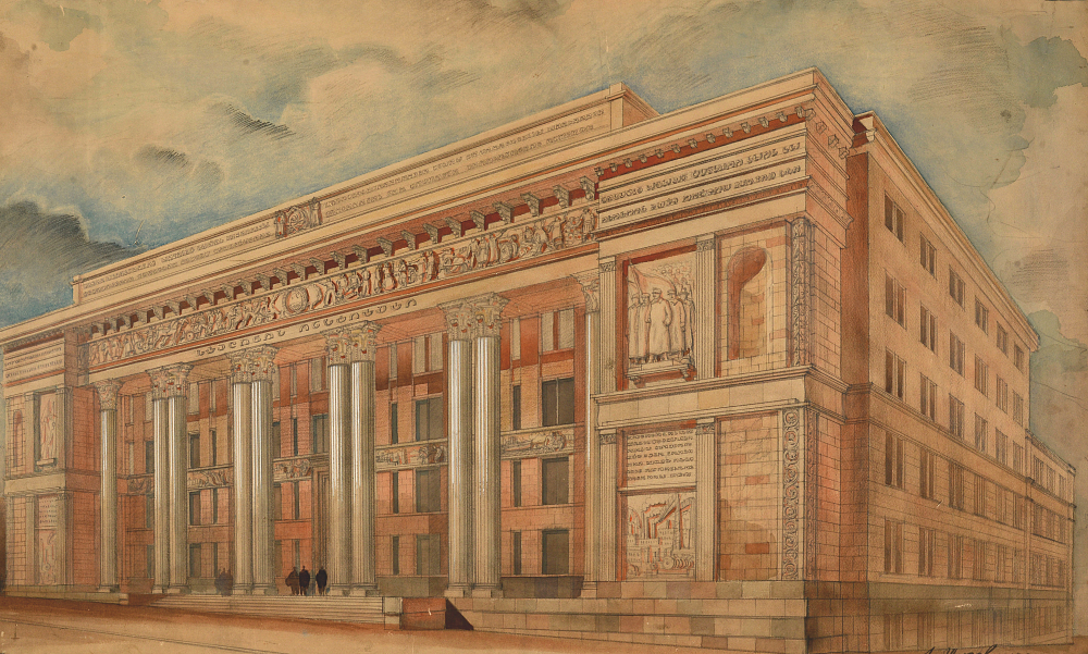 Путь от авангардных исканий 1920-х годов к торжеству неоклассики 1930-х иллюстрируют конкурсные решения памятника Христофору Колумбу, Библиотеки имени В.И. Ленина и Центрального телеграфа, реализованные проекты санатория в Мацесте, гостиницы «Интурист» в Батуми, зданий Наркомата земледелия на Садовом кольце и Наркомата внутренних дел на Лубянской площади в Москве, Института Маркса – Энгельса – Ленина в Тбилиси, масштабные замыслы перепланировки центральных улиц и площадей столицы. Великолепное умение мастера адаптироваться к быстро меняющимся стилевым направлениям демонстрируют варианты проекта Дворца советов, представленные на разные этапы конкурса.
