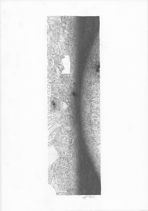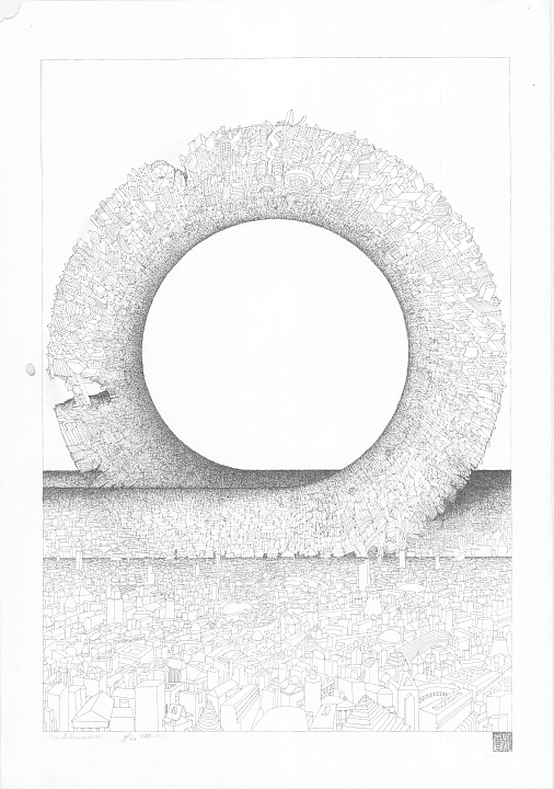 В графике Тотана белого всегда было больше. На снежном фоне проступали фантастические города, проявлялись сказочные архитектурные миры. Но вот, при всей любви его к белому, черное, очевидно, стало для Тотана не менее важным. Или, точнее сказать, – стало необходимым на этом этапе его развития. Маятник тотанова творчества докачнулся до черного – и автор, кажется, сам этому удивлен.