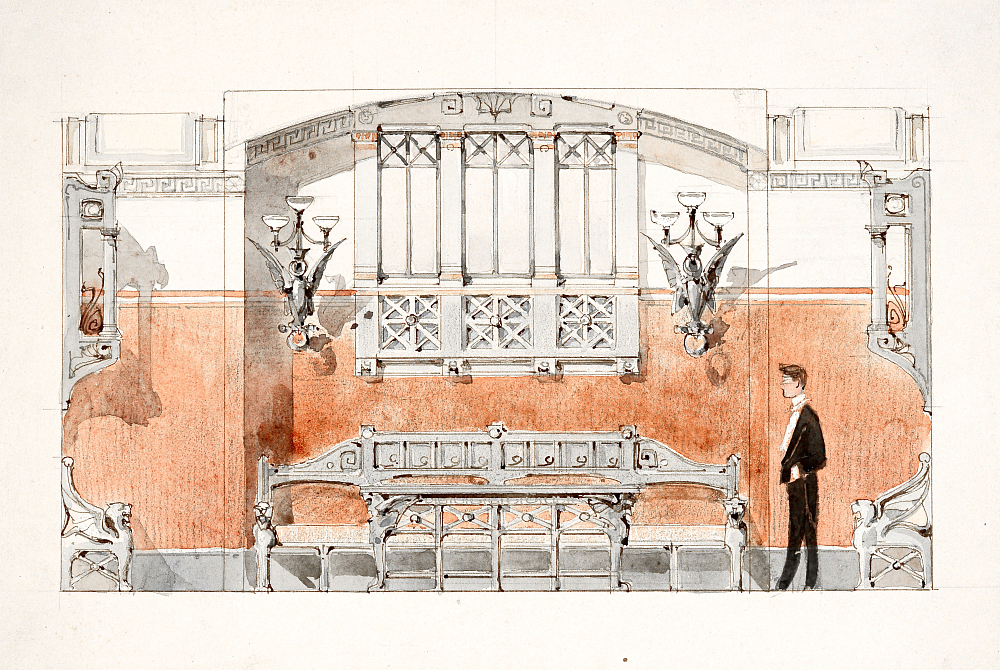 Жемчужиной раздела является небольшой зал с эскизами оформления интерьеров в стиле модерн известного на всю Москву ресторана «Мартьяныч», располагавшегося в подвале Верхних торговых рядов – нынешнего здания ГУМа.