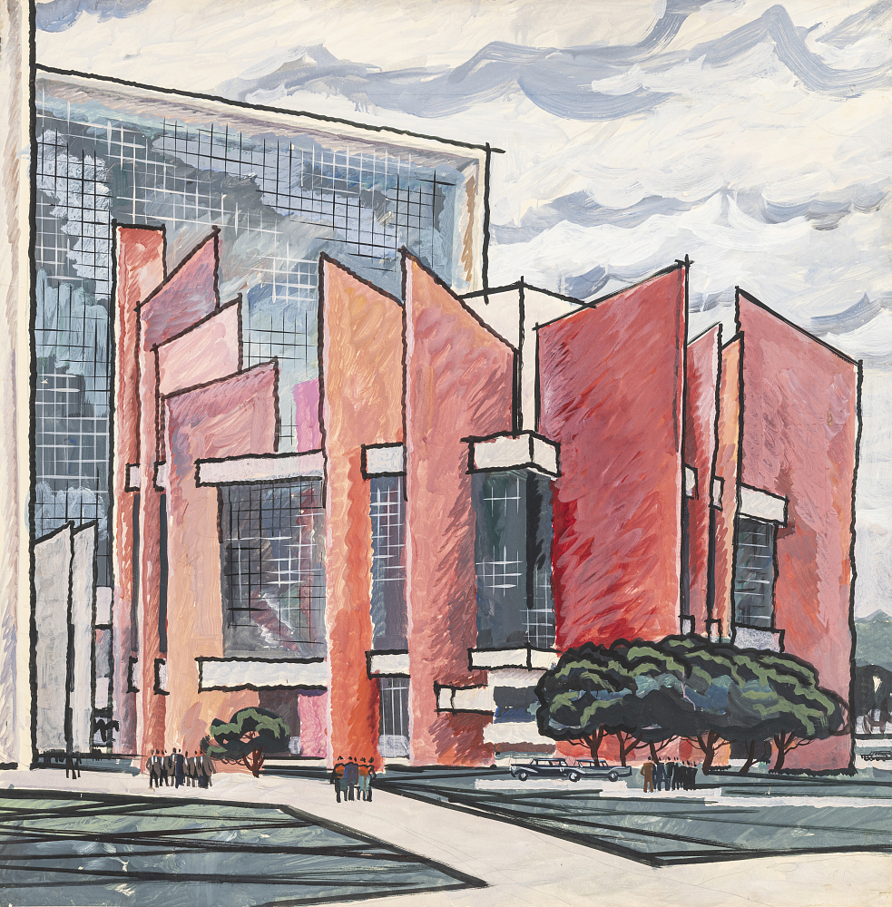 Центральный зал выставки освещает долгую историю рождения главного здания Академии наук – от первых проектов комплекса на Калужском шоссе до конкурсных предложений 1968 года и осуществлённого варианта. Создание этого сооружения наглядно отражает радикальную трансформацию, которую с ходом времени претерпела архитектура СССР. Проектирование начиналось с обращения к классическим прообразам и через искания раннего советского модернизма пришло к новой монументальности 1970-х годов.