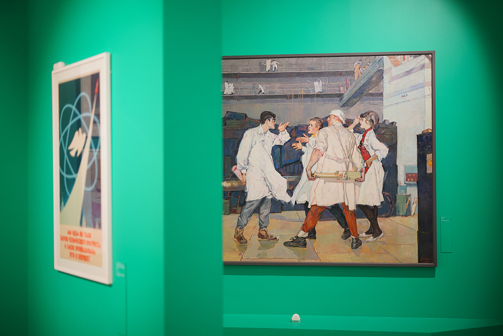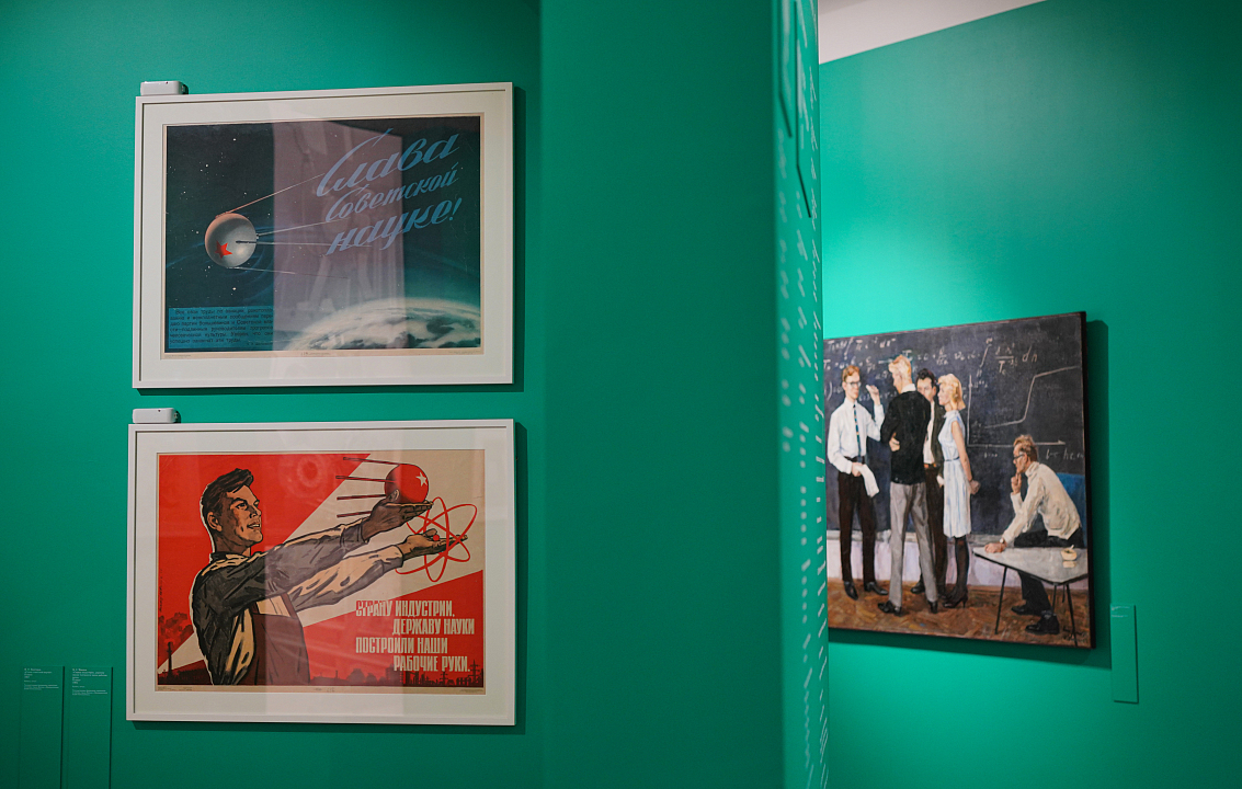 Второй раздел рассказывает об эпохе, в которой жил герой – учёный. Новый политический курс, ориентированный на взаимодействие учёных и власти, стал фоном для знаковых достижений советской науки середины 1950-х – начала 1960-х годов, которые выходили за рамки секретности и становились частью общественной жизни страны. Первый искусственный спутник Земли, полет Юрия Гагарина, начало работы первой в мире атомной электростанции в Обнинске, спуск на воду первого в мире атомного ледокола «Ленин» – эти и другие важные научные открытия и достижения показаны на выставке через плакаты, фотографии и архитектурные проекты.