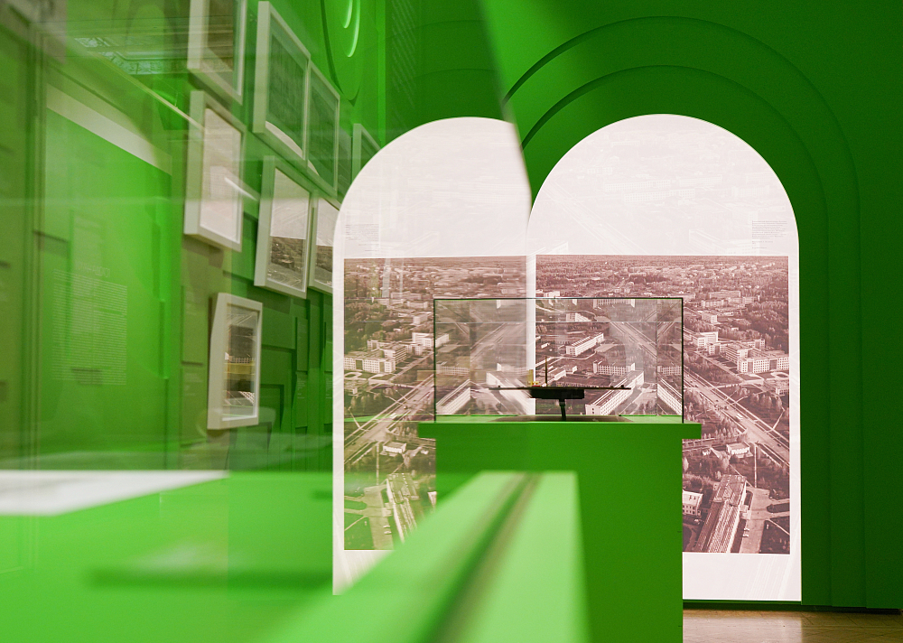 Завершает экспозицию раздел, посвящённый архитектуре городов науки. Поселения, уединённо расположенные в зелёных массивах, рационально и комфортно организованные, должны были стать идеальной средой для работы и жизни учёных. Помимо зданий научных учреждений, здесь строились жильё, кинотеатры, клубы и другие объекты культурно-бытового обслуживания. Идеалистические устремления далеко не всегда находили точное воплощение в реальности, но сам факт создания для учёных особых городов олицетворял высокий статус советской науки и отводившуюся ей роль в построении нового мира. История проектирования и строительства Новосибирского Академгородка, Научного центра биологических исследований Академии наук СССР в Пущино, Центра микроэлектроники в Зеленограде, а также Ногинского научного центра Академии наук СССР (Черноголовка) и центра в Протвино рассказана через макеты, уникальные исторические фотографии и архитектурную графику.