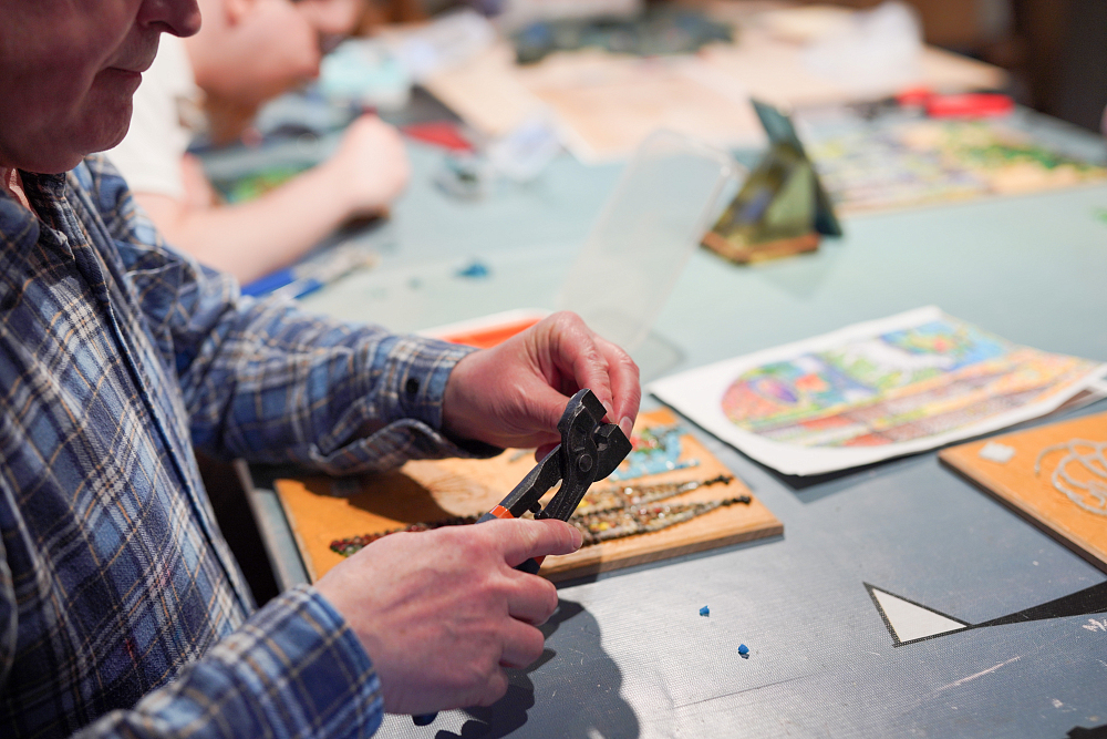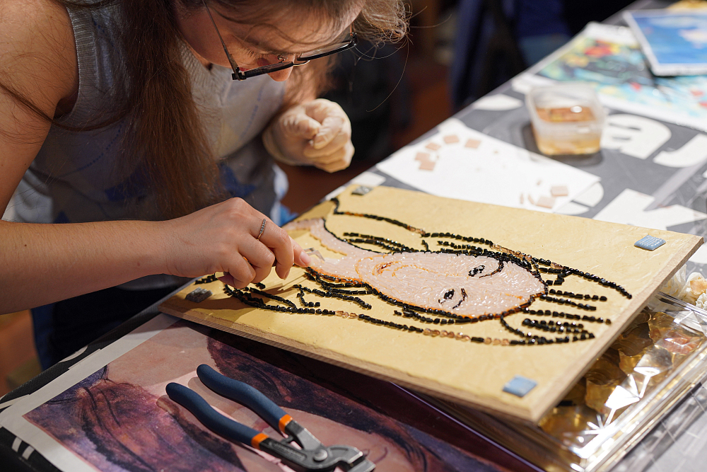 Ученики студии мозаики на протяжении учебного года осваивают процесс создания мозаики и под руководством педагога воплощают собственные идеи. На выставке будут представлены как завершенные работы, так и те мозаики, которые ещё предстоит доделать. Так, посетители выставки смогут увидеть процесс создания мозаичного изображения.