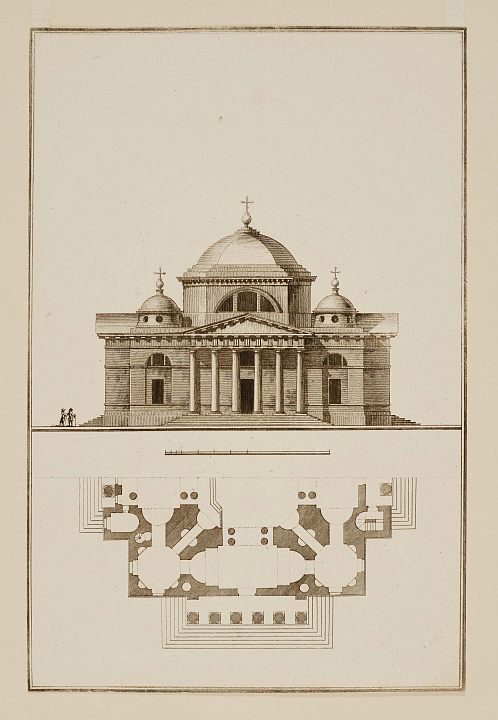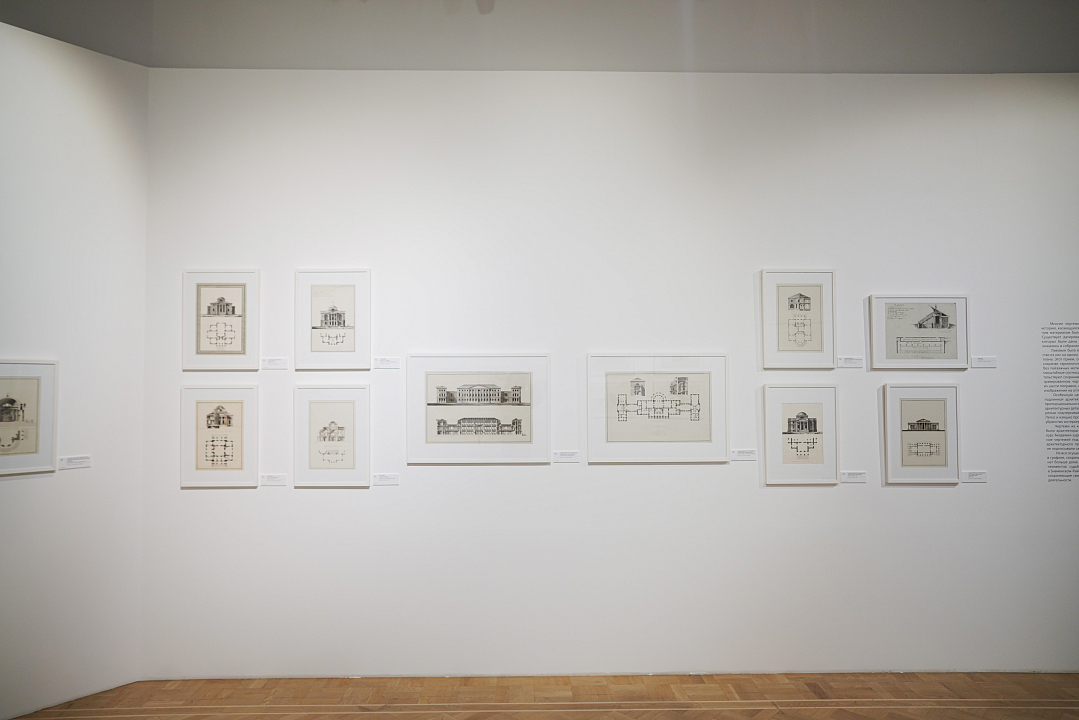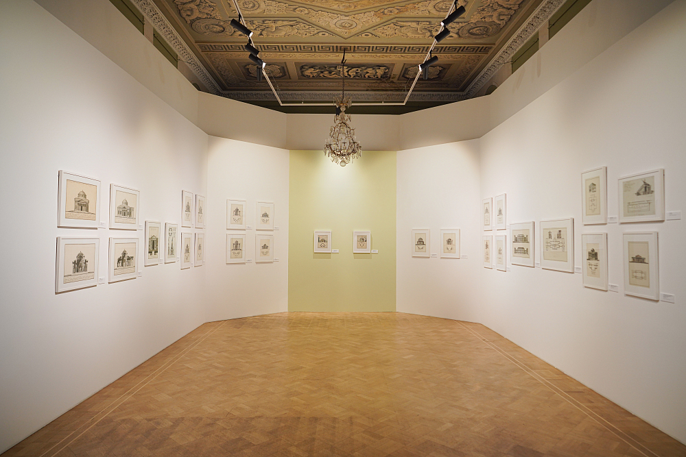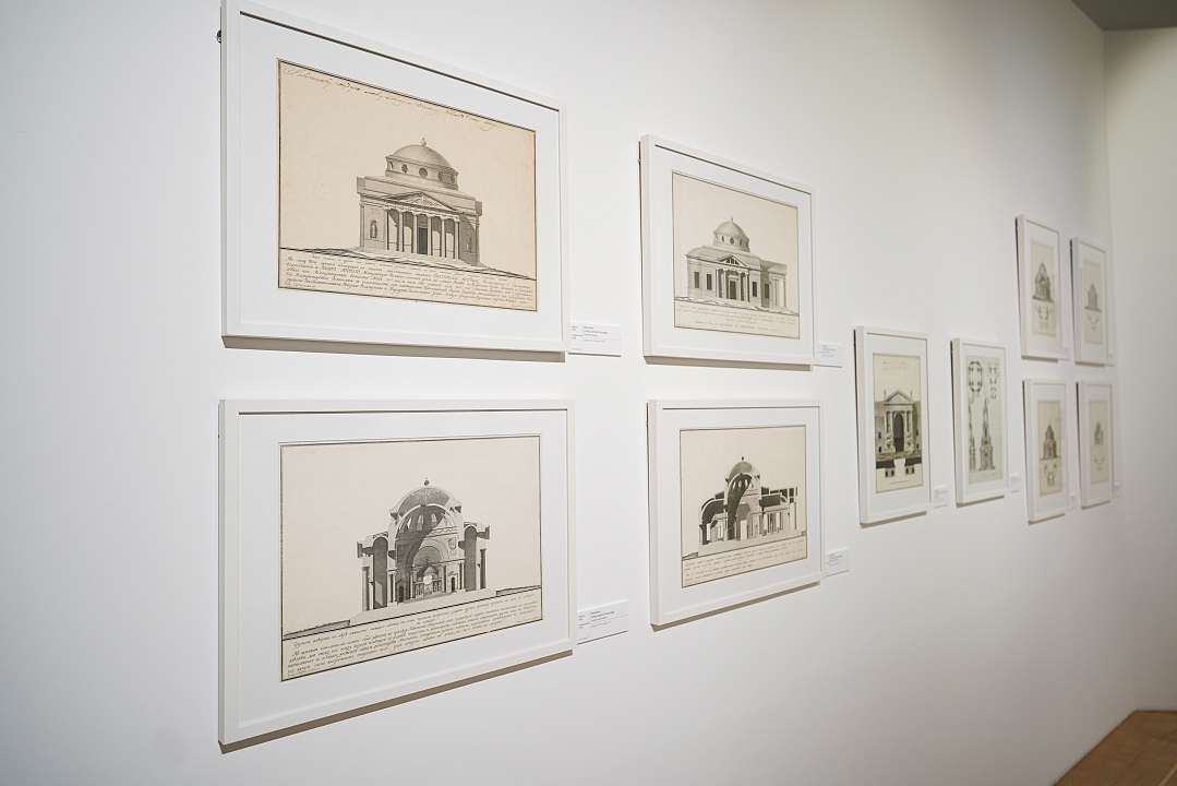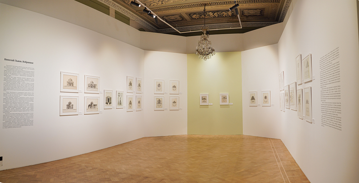 Большую часть коллекции Николая Львова составляет графика, относящаяся к храмовому строительству. Открывают экспозицию листы с проектом собора Св. Иосифа в Могилеве, созданным в 1780 году для того, чтобы отметить важное для России дипломатическое событие: переговоры императрицы Екатерины II и австрийского императора Иосифа II. Именно поэтому уже в 1782 году с чертежей была выполнена специальная серия гравюр. В пояснительных надписях зафиксирована архитектурная программа зодчего, вложенная в это сооружение.