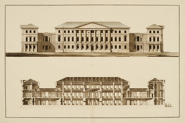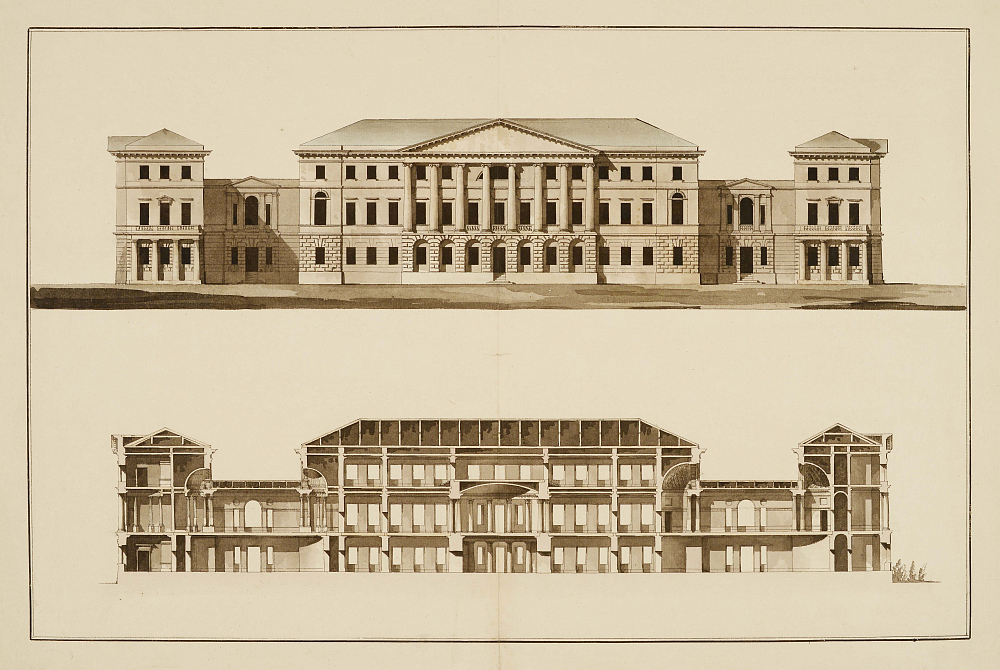 Многие чертежи и гравюры из собрания Музея архитектуры имеют особую историю создания. В 1791 году Львовым был предпринят перевод 30 проектов в гравюры. Для этого по рабочим материалам помощниками архитектора были специально подготовлены чертежи фасадов, разрезов и планов. Особенную ценность эти чертежи представляют как прекрасные образцы подлинной архитектурной графики второй половины XVIII века. Точность пропорционального построения, четкость планов и разрезов, ясность архитектурных деталей в них очевидна. Блестяще выполненная отмывка акварелью подчеркивает выразительность пластической моделировки фасадов.