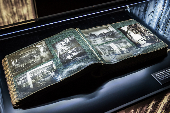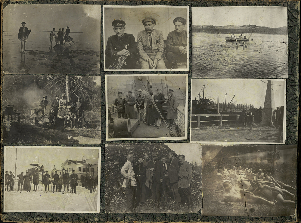 Второй документ, представленный на выставке — альбом фотографий Соловецкого лагеря особого назначения, на которых запечатлена инфраструктура и быт лагерной жизни.