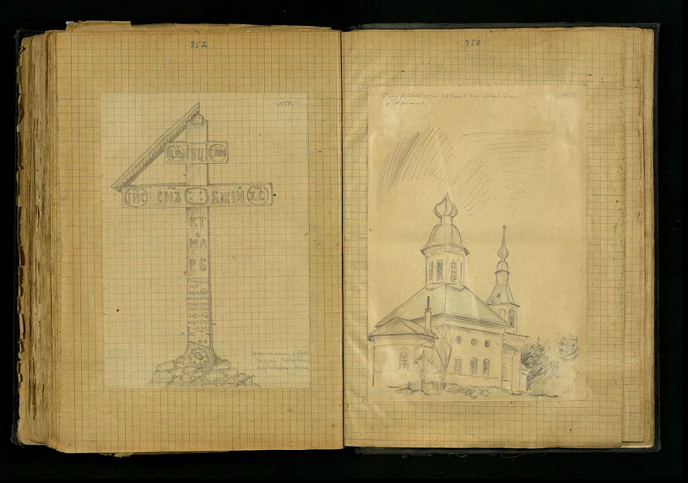Основой для первого раздела экспозиции выставки стала рукопись заключенных Соловков Пантелеймона Казаринова и Александра Евневича. Рукопись является результатом исследования, выполненного летом 1934 года. Авторы составили описание и зарисовали более 400 архитектурных, исторических и археологических памятников, большинство из которых в настоящее время утрачены. В 1937 году оба автора рукописи были расстреляны.