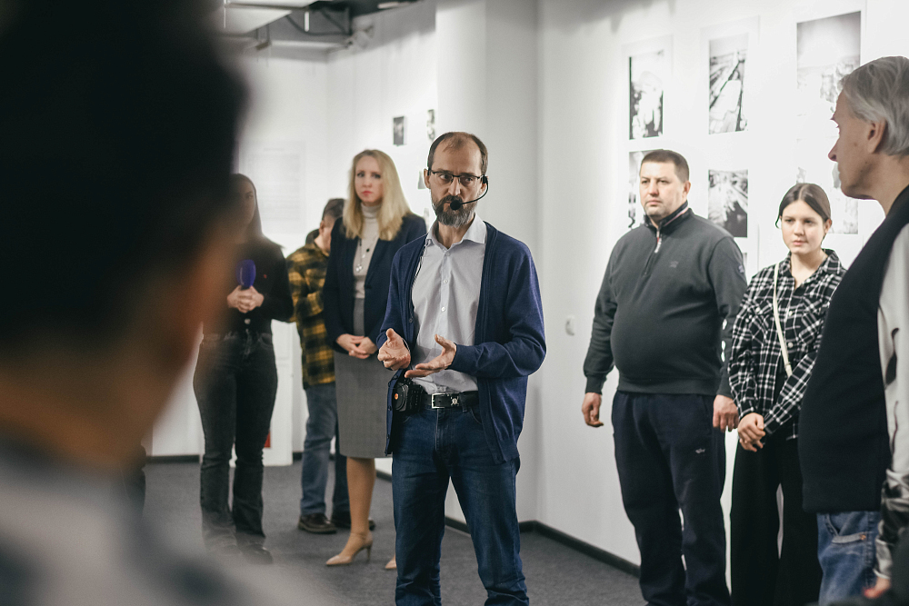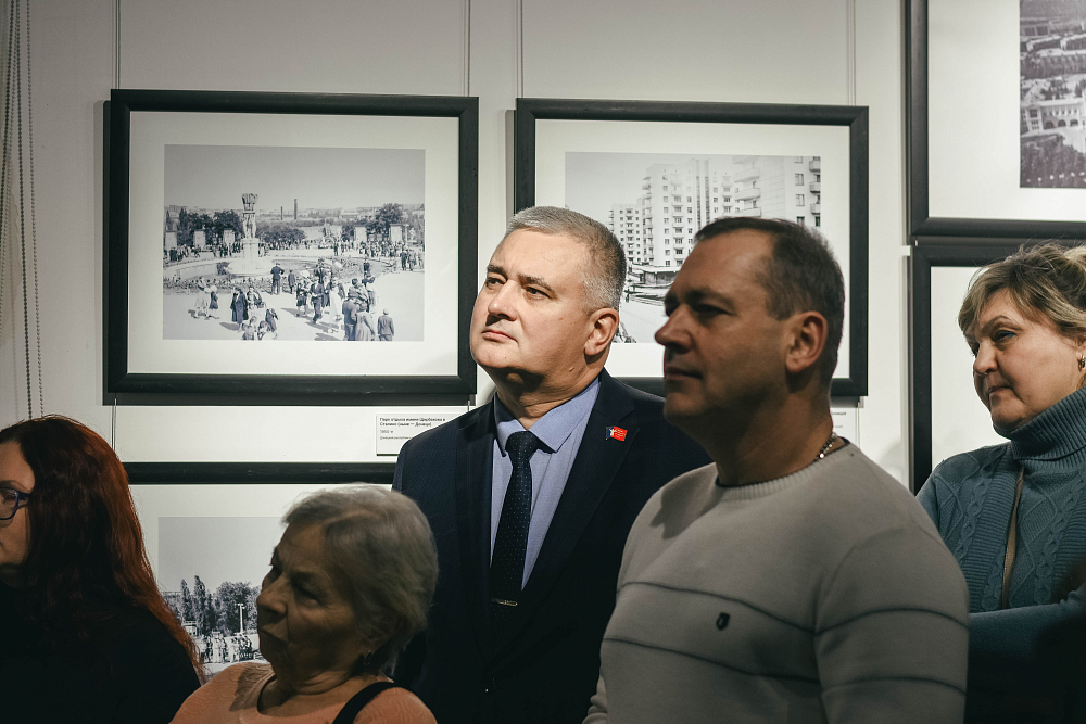 Отдельный комплекс фотографий представляет Евгения Халдея в кругу земляков и сотрудников Донецкого краеведческого музея, который в 2024 году отметил своё 100-летие. Эти кадры фиксируют моменты живого общения при подготовке выставочных проектов в Донецке.