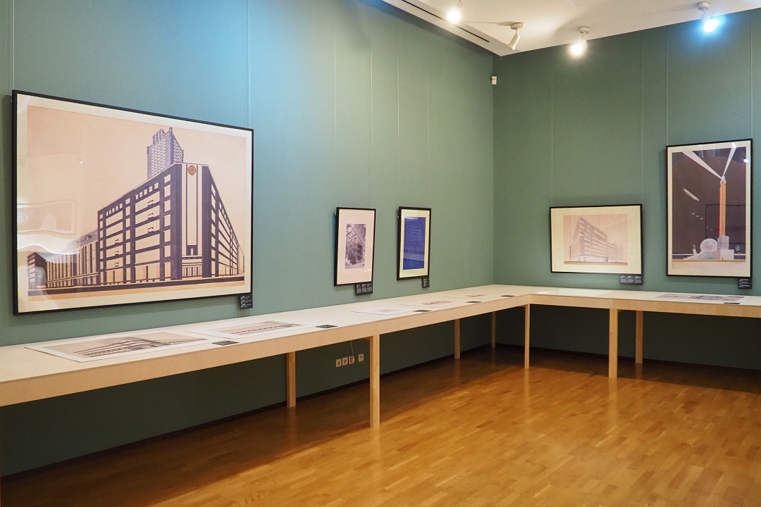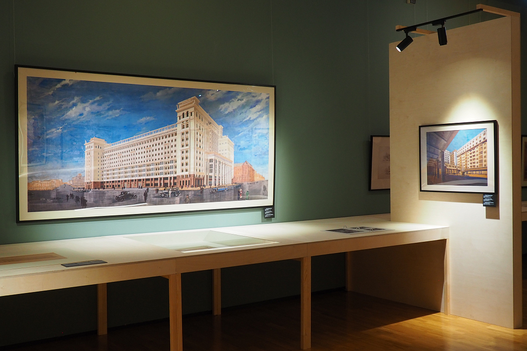 Архитектура выставки, разработанная Агнией Стерлиговой и командой архитектурного бюро Planet9, отражает основной замысел кураторов проекта: представить невероятно объемное и многослойное творчество Алексея Щусева во всем его многообразии и масштабе, структурируя пространство, уподобленное архитектурной мастерской с большими столами и многочисленными вариантами проектов на стенах.
