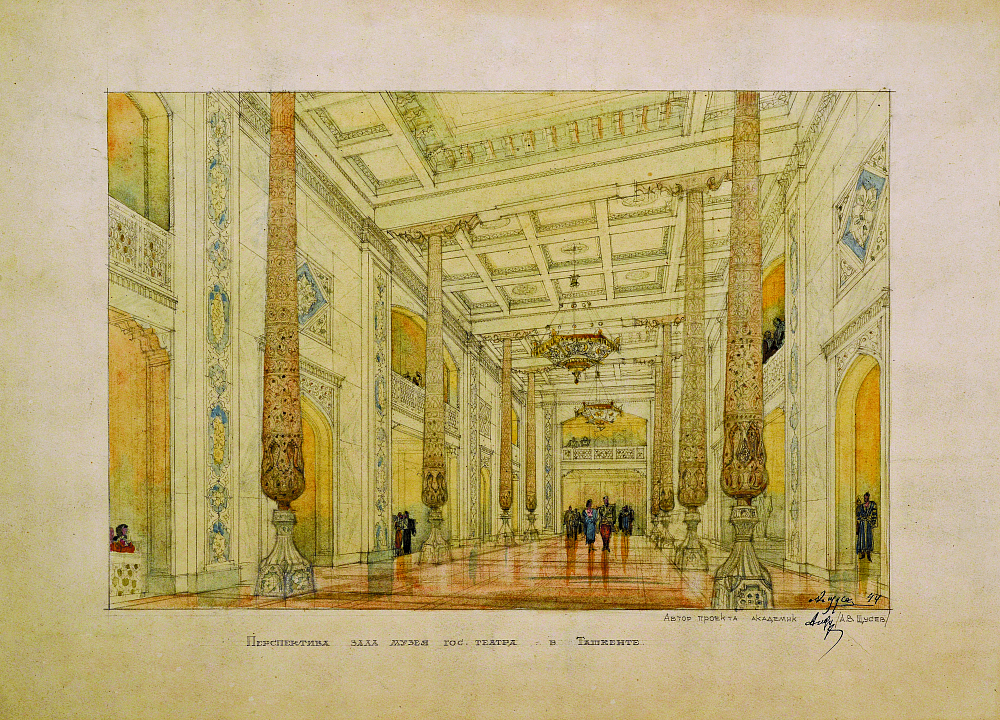 Для Музея архитектуры выставка «Алексей Щусев. 150. Усто меъмор» – самый масштабный зарубежный проект за последние десятилетия. Она занимает два выставочных зала Галереи изобразительного искусства Узбекистана: первая часть показывает весь творческий путь мастера, вторая часть посвящена работе архитектора в союзных республиках, в том числе в Узбекистане.