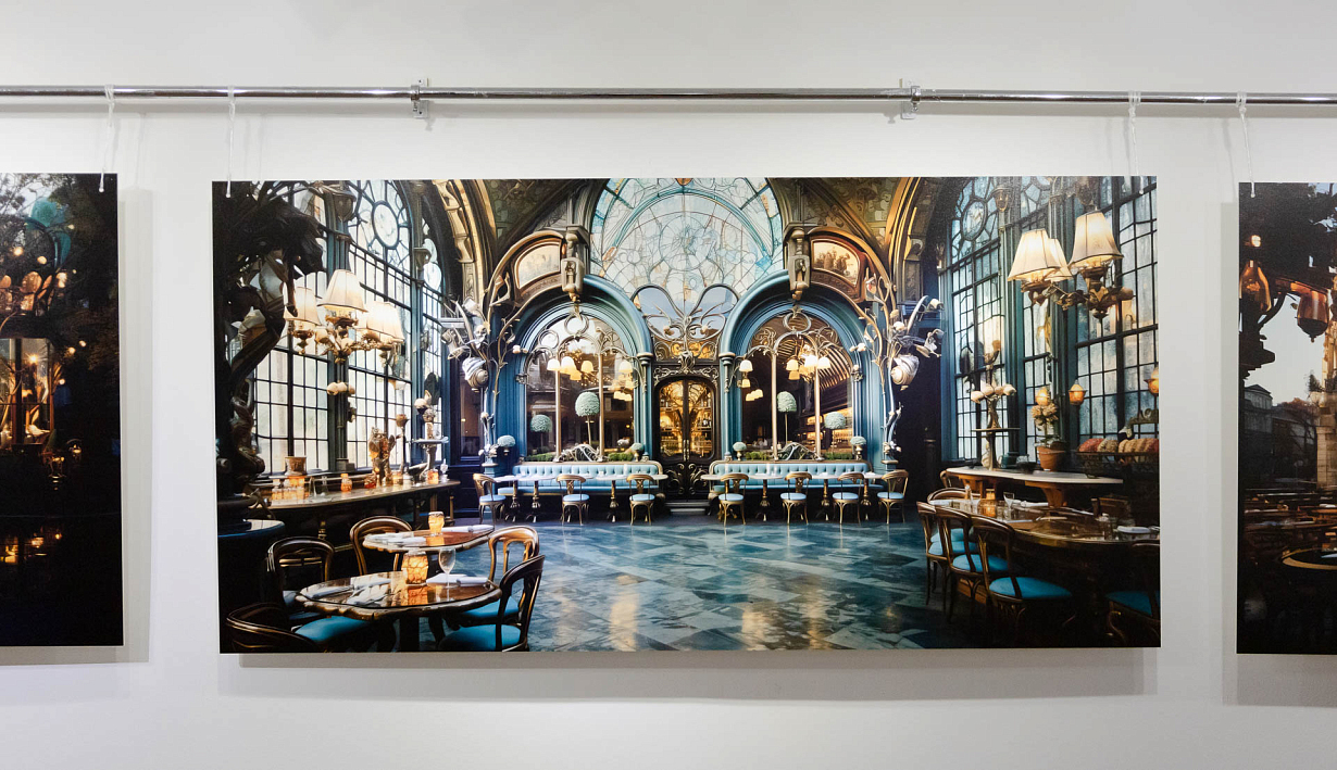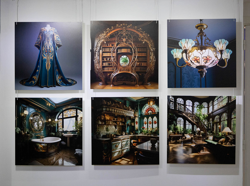 Из 500 созданных в пяти нейросетях изображений для выставки были отобраны более 50 – они представят фасады, интерьеры, предметы декоративно-прикладного искусства и даже одежду, открывая нам новые грани русского искусства модерн, уже в ХХI веке. Бельгийская часть выставки будет представлена разделом «Потерянная записная книжка Виктора Орта», посвященная виртуальным реконструкция творений легендарного бельгийского архитектора – основоположника стиля модерн.