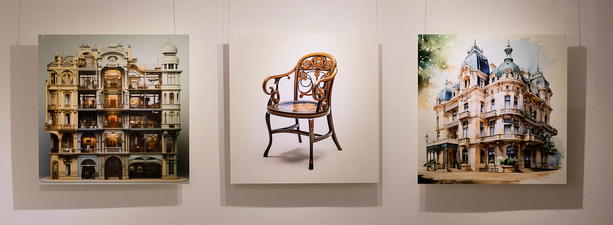 Благодаря искусственному интеллекту кураторами выставки были воссозданы работы, которые могли бы существовать, если бы архитекторы модерна продолжали творить в наше время. Были использованы исторические и современные фотографии, архивные чертежи и описания, предоставленными Музеем архитектуры им. А.В. Щусева в Москве. А первый российский арт-генератор Kandinsky 2.2 создал стилизованные портреты русских архитекторов.