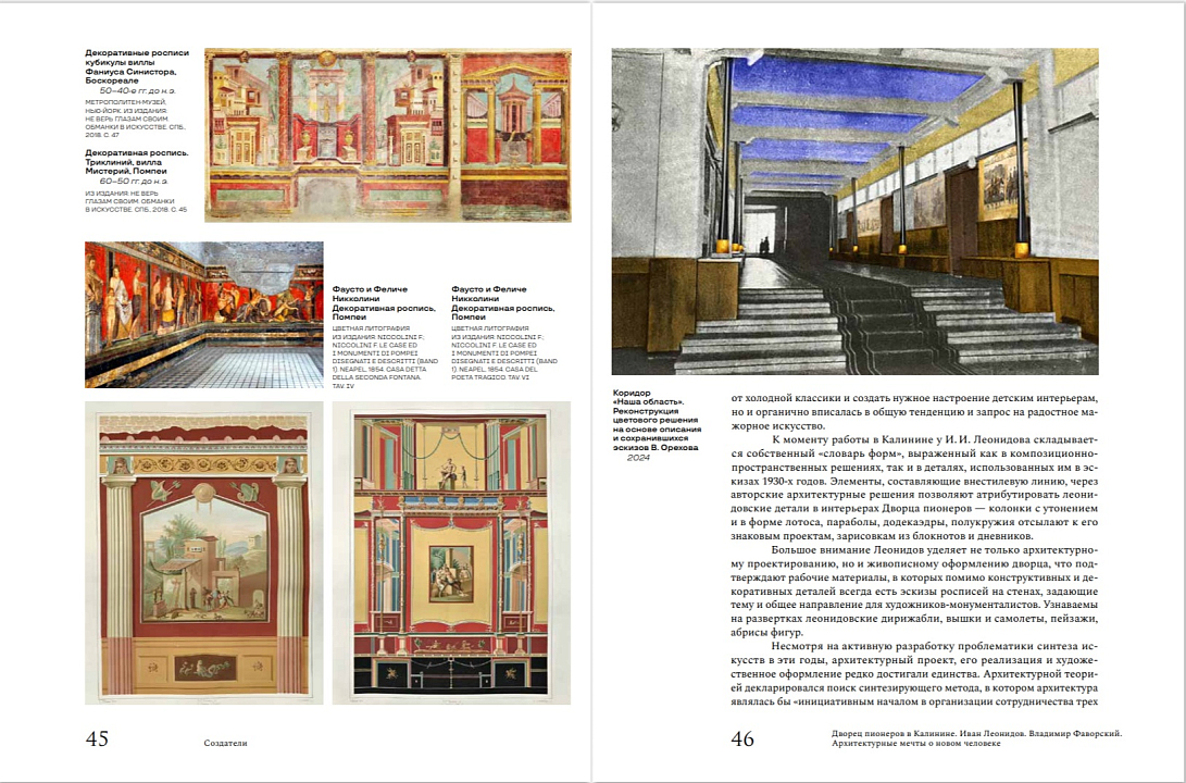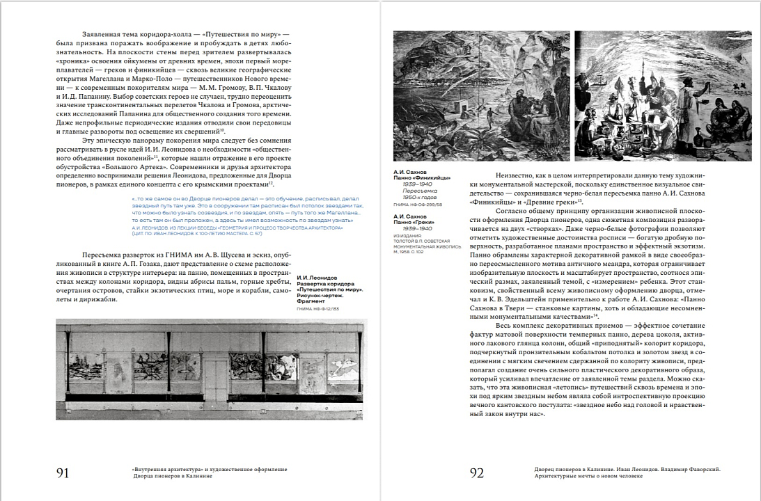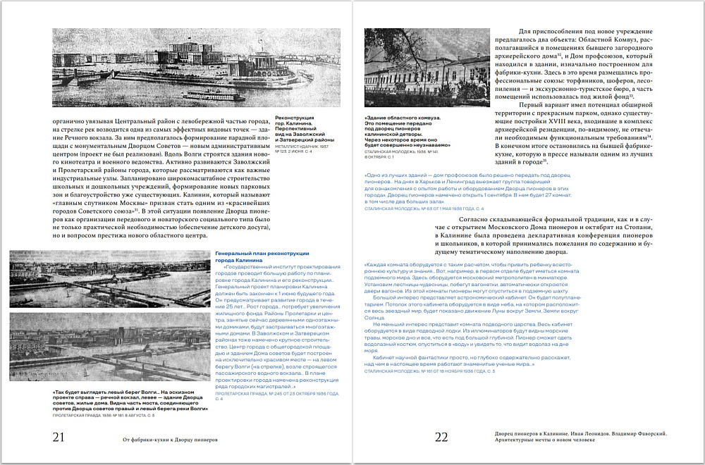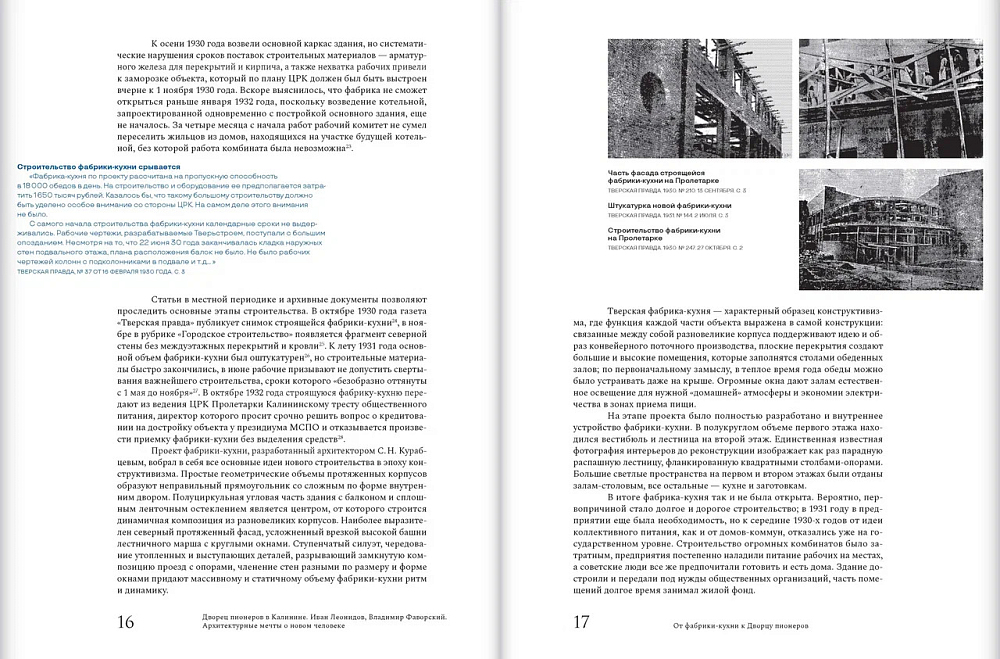 Проект Тверской областной картинной галереи и издательства «Кучково поле Музеон» 2024 года посвящен ключевому памятнику архитектуры конструктивизма Твери - Дворцу пионеров (1929-1941 гг.), построенному в эпоху ярчайших достижений русской архитектурной мысли. Книга стала итогом историко-архивного исследования, позволяющего на основе архивных документов, произведений из музейных и частных коллекций, воспоминаний воссоздать замысел архитектурно-художественного решения Дворца пионеров как в рамках творческой практики его выдающихся создателей Ивана Леонидова и Владимира Фаворского, так и в контексте общих теоретических и практических поисков в области архитектуры и монументальной живописи 1920-1930-х годов. Особый интерес представляет раздел, посвященный тверскому этапу жизни и учебы Ивана Леонидова, вводящий в научный оборот круг ранее не опубликованных архивных документов, связанных с биографией архитектора.