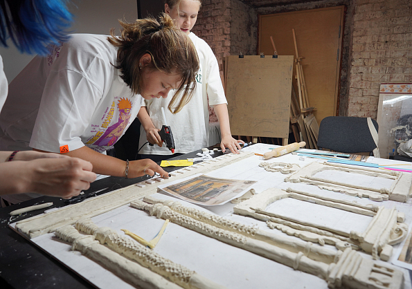 Главным объектом изучения участников второй смены АРХИлагеря стал Казанский вокзал. Изучив ансамбль памятника, архитектурные решения при строительстве вокзала и его историю, ребята сфокусировались на одном из фрагментов фасадов и воплотили их в объемном рельефе.