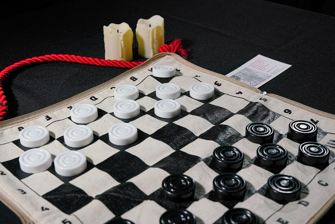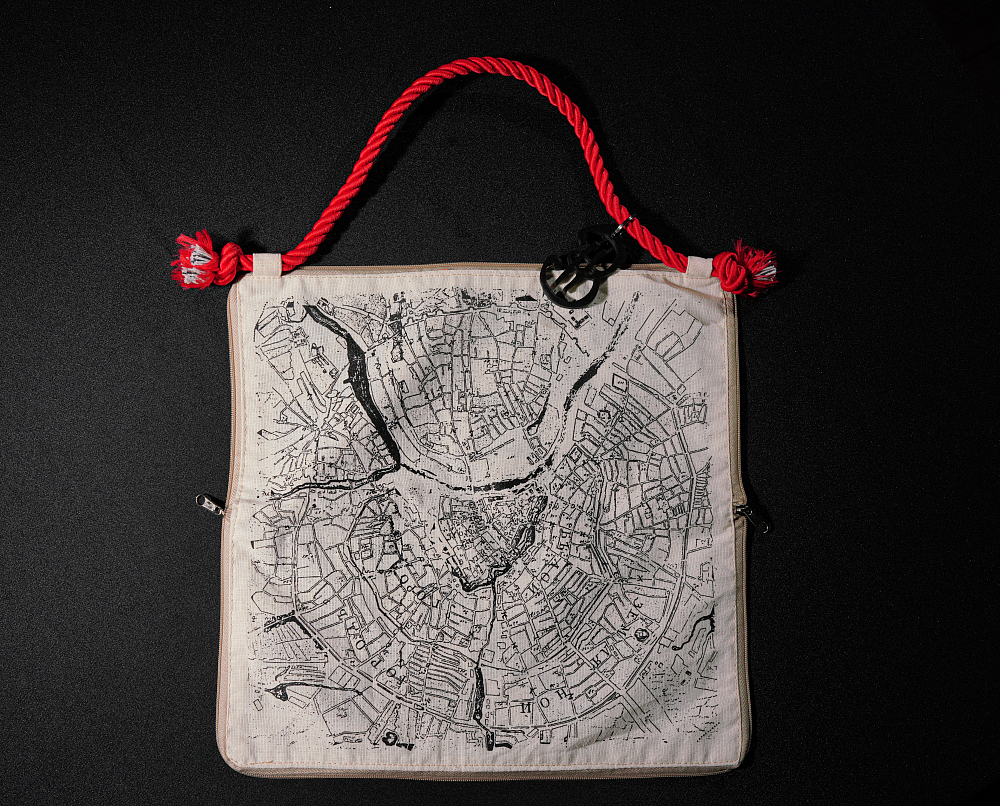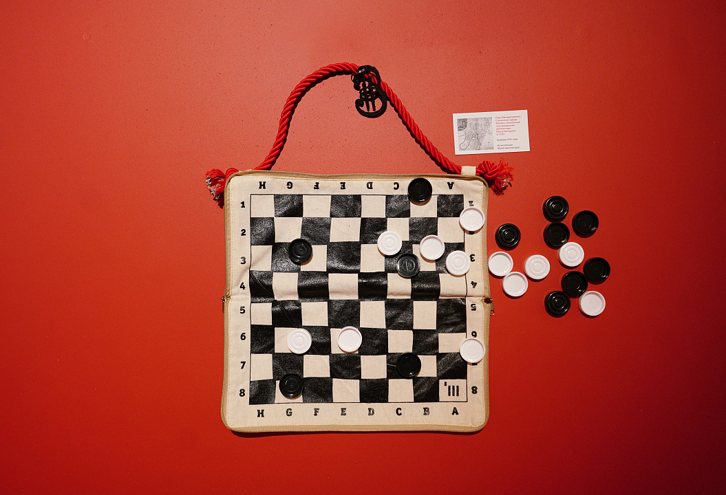 - Сумочка-игра «Шашки»: сумочка с изображением плана Москвы Екатерининского времени, внутренняя сторона которой представляет собой поле для игры в шашки.