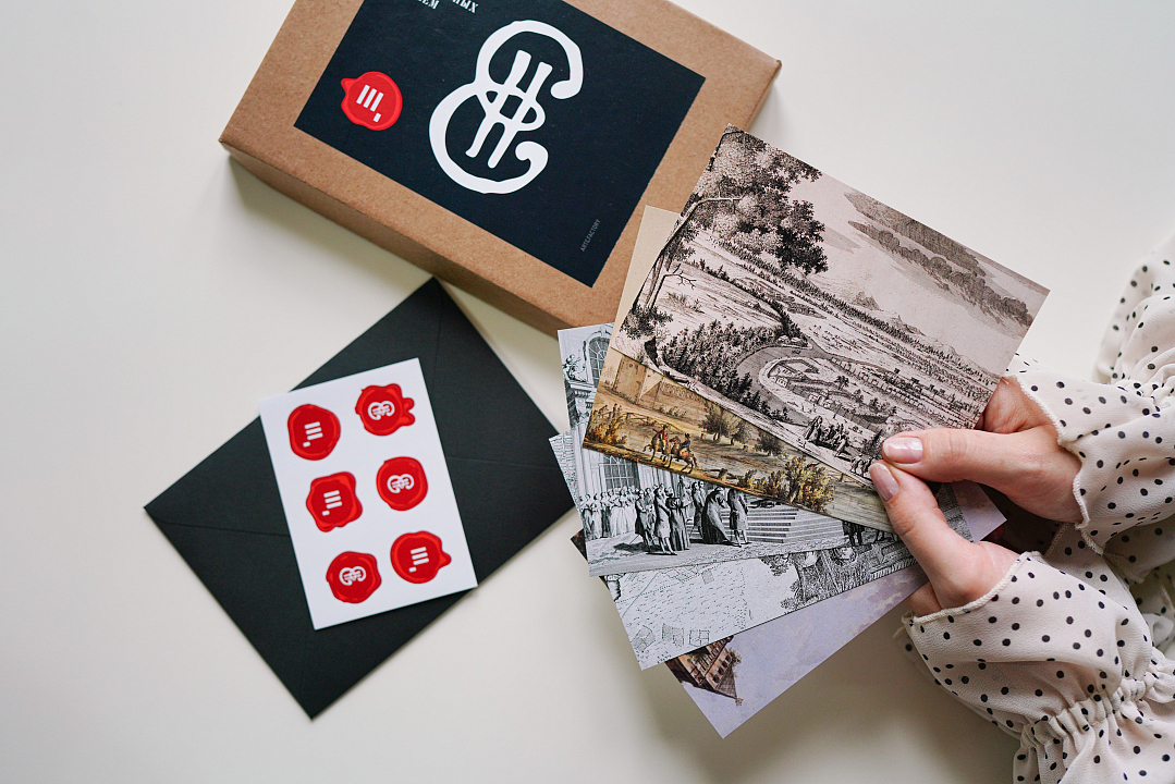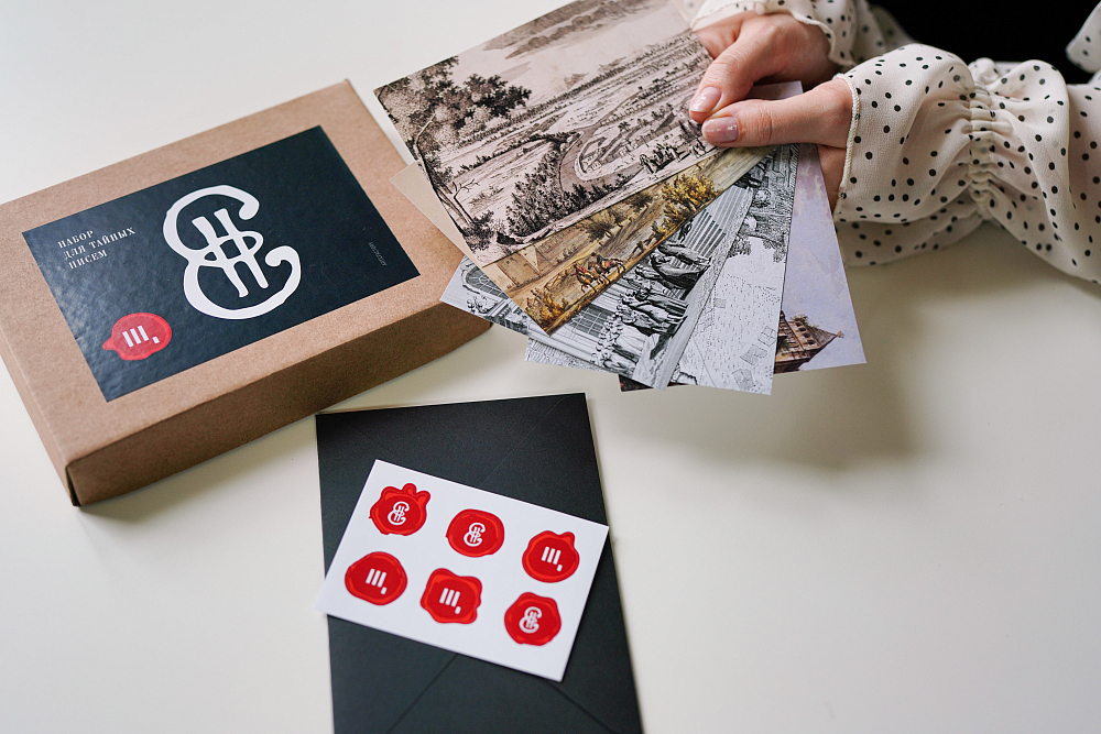 - «Набор для тайных писем»: набор, состоящий из открыток с изображениями гравюр, картин и панорам из коллекции Музея архитектуры, черных фактурных конвертов и стикеров, напоминающие старинную печать из сургуча, которыми можно заклеить конверт.